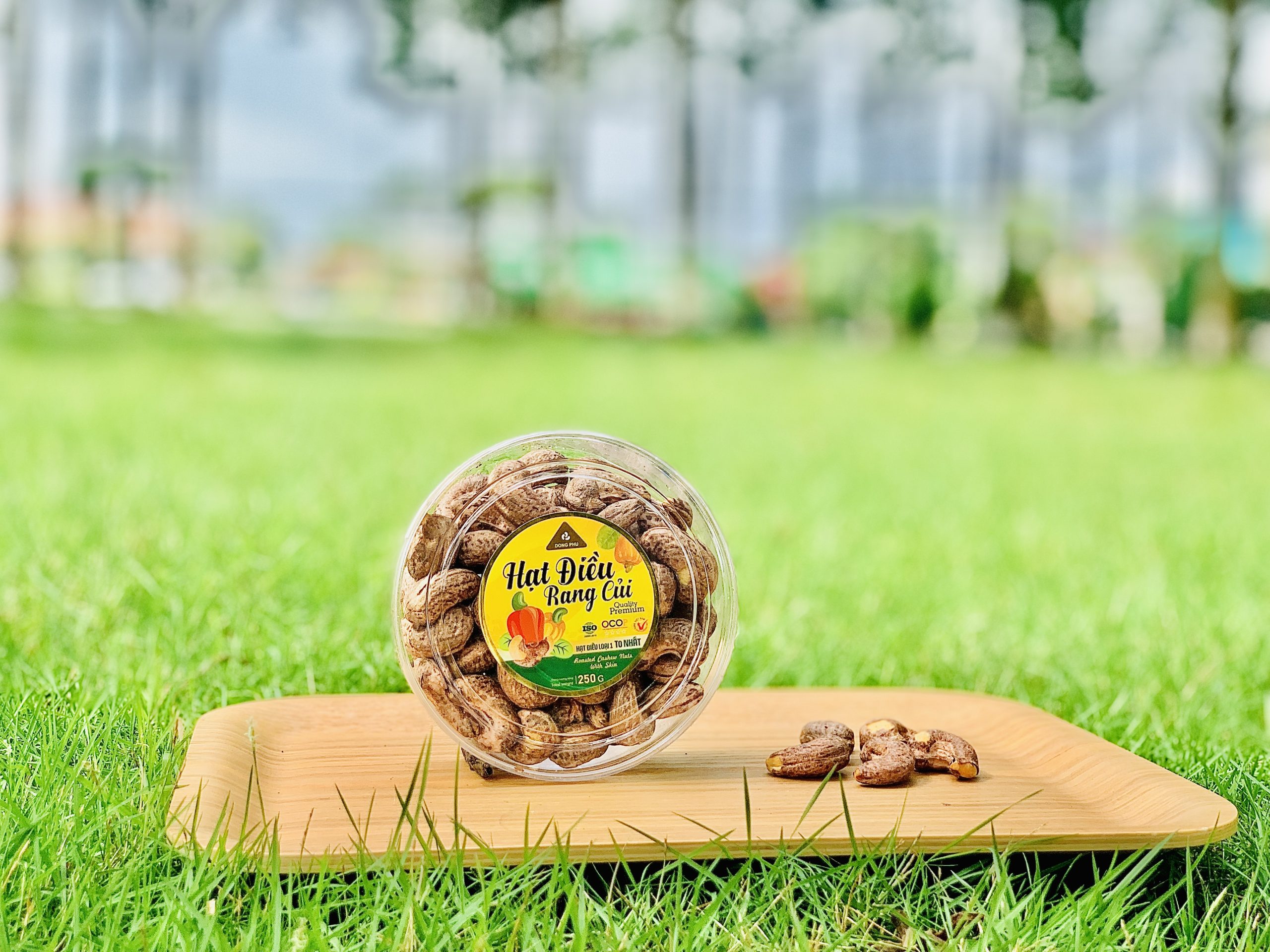 Trước khi hạt điều Campuchia xuất hiện thì hạt điều Bình Phước được xem như là Vua của các loại hạt điều trên thế giới bởi độ ngọt và độ béo cao gấp nhiều lần. Nhưng nhược điểm là kích thước hạt nhỏ nên rất khó sử dụng để sản xuất các mẫu hạt điều xếp hoa. Hạt điều rang củi hộp tròn 250g không xếp hoa là một trong những sản phẩm sử dụng 100% hạt điều có nguồn gốc từ Bình Phước. Từng là dòng hàng Best seller tại các siêu thị của Phú Quốc và Nha Trang.